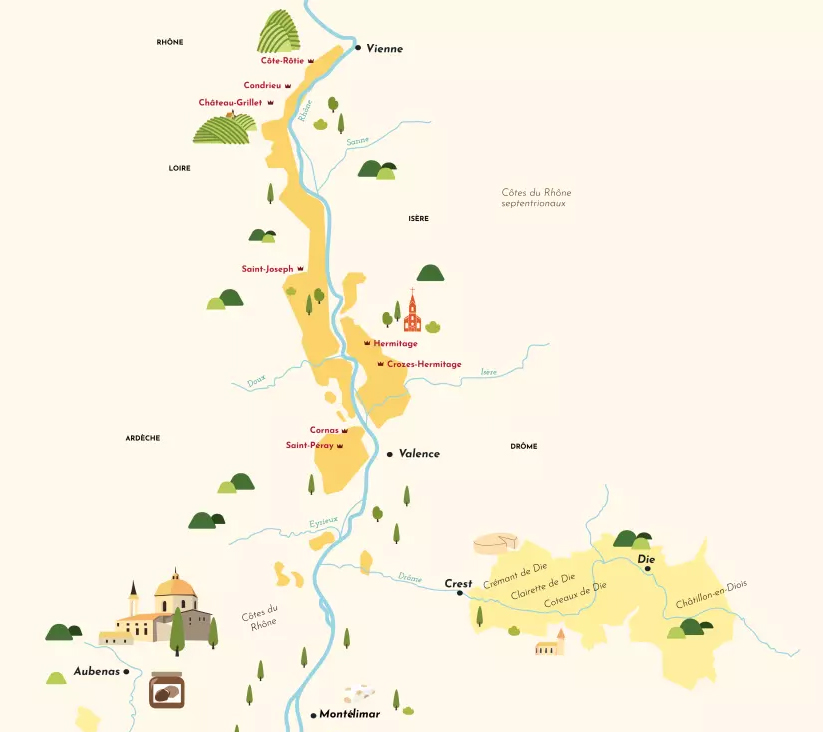 Avant de découvrir la dernière appellation du Rhône Nord, vous ferez un détour par les terroirs de l’AOP Cornas et de celui de Saint-Péray.