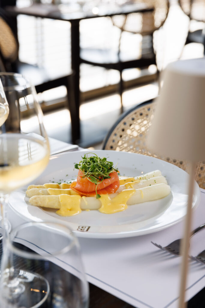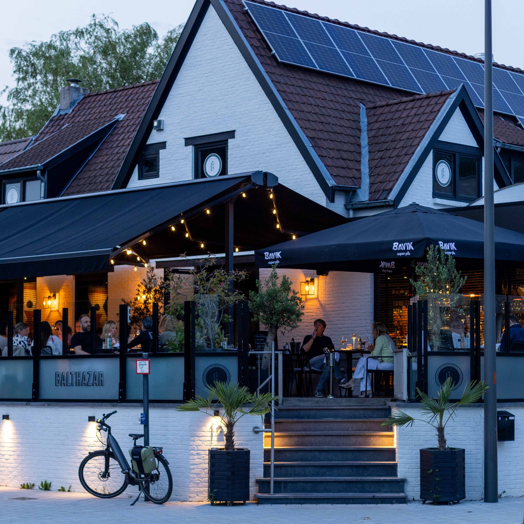 Situé à proximité de l’ancien hippodrome de Sterrebeek, devenu le « National Golf Brussels », le restaurant Balthazar vaut à lui seul le déplacement. Ce beau projet est l’œuvre d’un duo formé par Olivier et Julie qui partagent la passion du beau produit comme celle de l’accueil, passant régulièrement entre les tables et s’intéressant à tout un chacun. L’élégant cadre contemporain est composé de tables d’ébène, de chaises en rotin, d’un grand bar et d’un mur décoré par une œuvre géométrique et colorée que l’on retrouve sur le menu. Derrière les fourneaux, le chef Ousmane Bah navigue entre France et Méditerranée signant une carte éclectique et innovante.