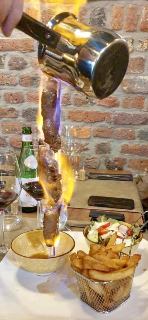 Le cadre est aussi sympathique que l’accueil qu’on y reçoit. Ambiance et décoration de style industriel où les matériaux bruts donnent le ton. Que vous soyez terre, mer ou veggie, la Sablonnière vous réserve un moment convivial et gourmand, mais avouons-le, côté grillades, les viandes sont tendres et goûtues avec une carte qui oscille entre origine belge ou européenne. Les cuissons sont bien exécutées et les frites croustillantes sont cuites à la graisse de bœuf. Mention spéciale pour les « lances flambées » : choix entre agneau, bœuf, truite ou gambas, flambés au whisky, au pastis, à la sambuca ou au cognac !