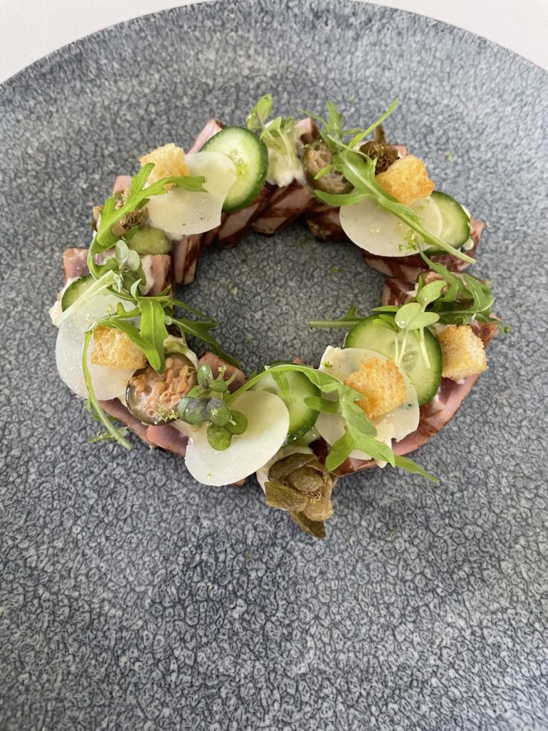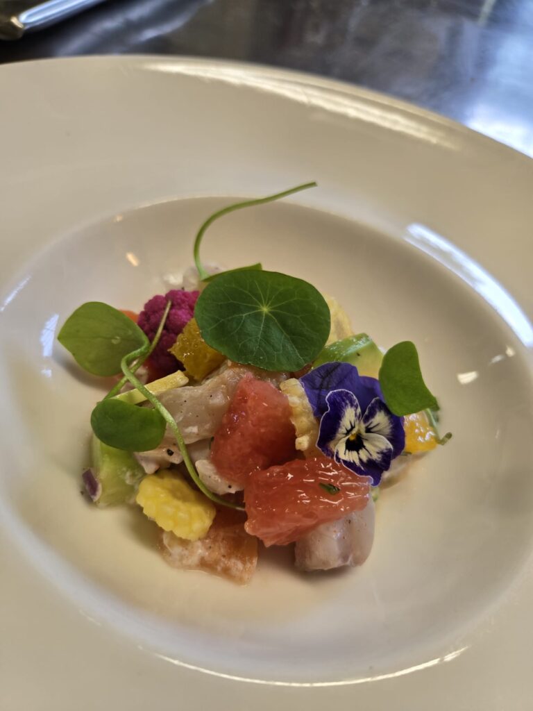 Olivier Wilbers a fêté en 2024, son trentième anniversaire à la tête de cet établissement, qui a connu de belles transformations et une constante recherche de qualité et de confort. Côté cuisine, il propose des classiques avec une élégante touche de modernité, sélectionnant les produits locaux et ceux du potager. Maître Cuisinier depuis de nombreuses années, il concocte avec sa brigade, des menus gastronomiques aux doux noms de « Ballade des Saveurs » ou encore « Caprices de Charlotte ». Coup de cœur pour le ceviche de lieu jaune aux agrumes, piment et coriandre qui alliait fraîcheur et saveur dans une assiette élégamment colorée tout comme le pigeonneau confit et poêlé, polenta croustillante et chutney d’oignons rouges. L’accord mets et vins s’est joué entre France, Italie et Roumanie avec un surprenant vin blanc (Cuvée Clémence) de la cave Serve en Roumanie.