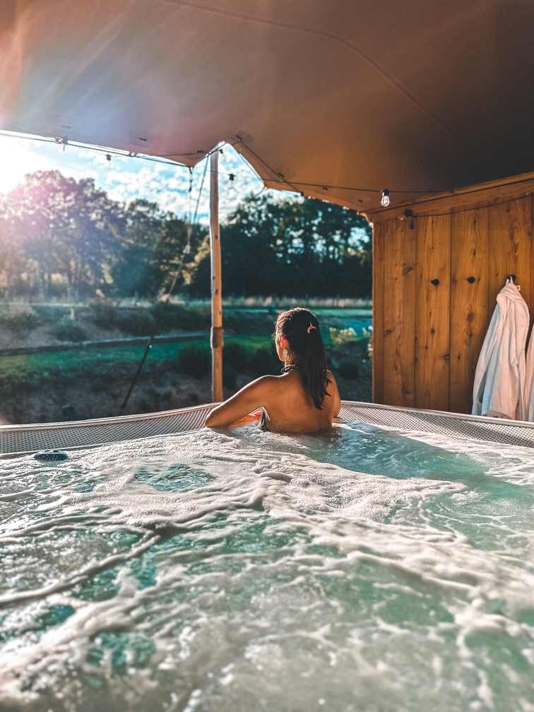 Côté bien-être, l’expérience prend une dimension toute particulière. Le Domaine offre un jacuzzi à débordement, ouvert sur le paysage, invitant à se détendre face à la nature, ainsi qu’un sauna panoramique avec vue sur la forêt. Un moment suspendu, où la chaleur, le silence et les arbres ne font plus qu’un — idéal pour relâcher les tensions et se reconnecter pleinement.