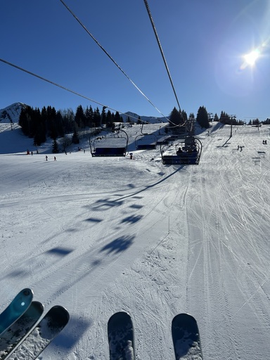 Côté glisse, le domaine est un véritable terrain de jeux : larges pistes, sapins enneigés, télésièges débrayables dernier cri (un vrai confort !), et surtout, en février, ce duo idéal : un soleil généreux et une neige de qualité.
