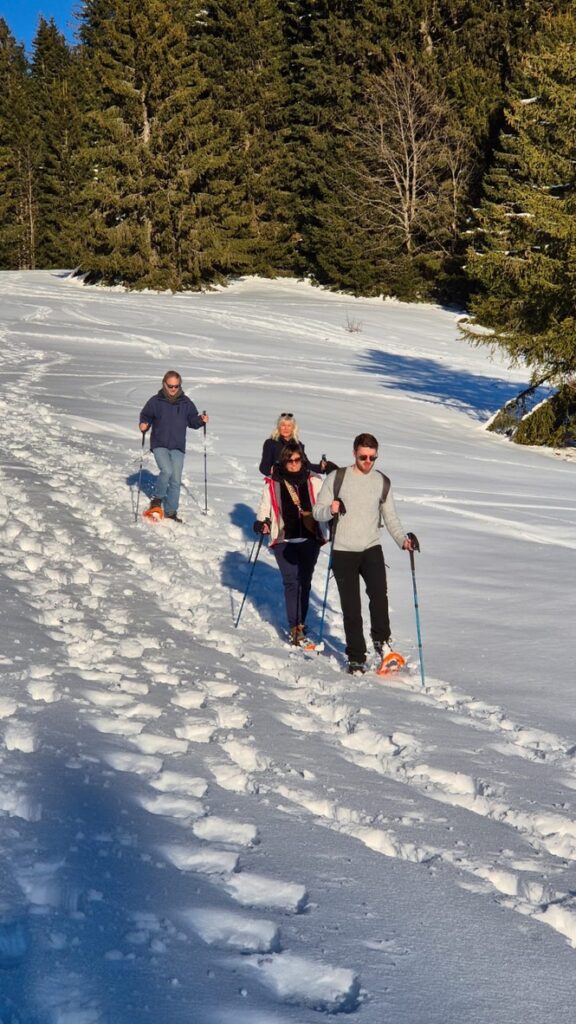 Envie de respirer autrement ? Direction le Mont Caly, sans doute l’une des plus belles vues des Gets. Depuis le restaurant Les Chevrelles, partez en randonnée en raquettes et plongez dans un monde silencieux et enchanteur. Accompagné d’un guide, vous découvrirez pas à pas l’histoire des alpages, les traces des animaux, et la beauté des forêts enneigées.