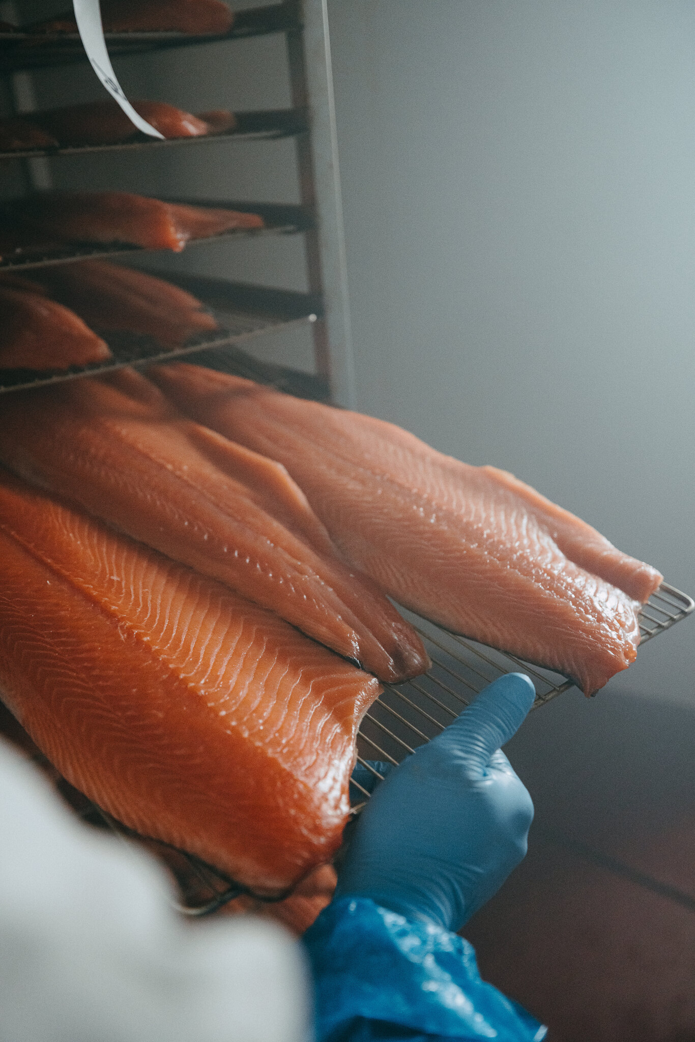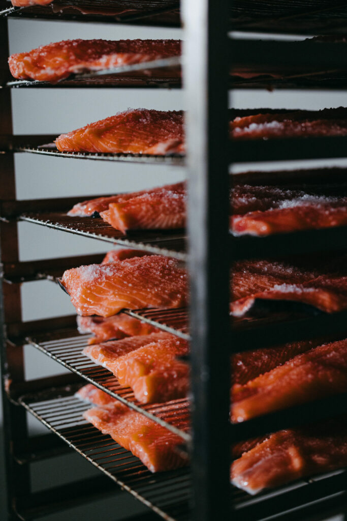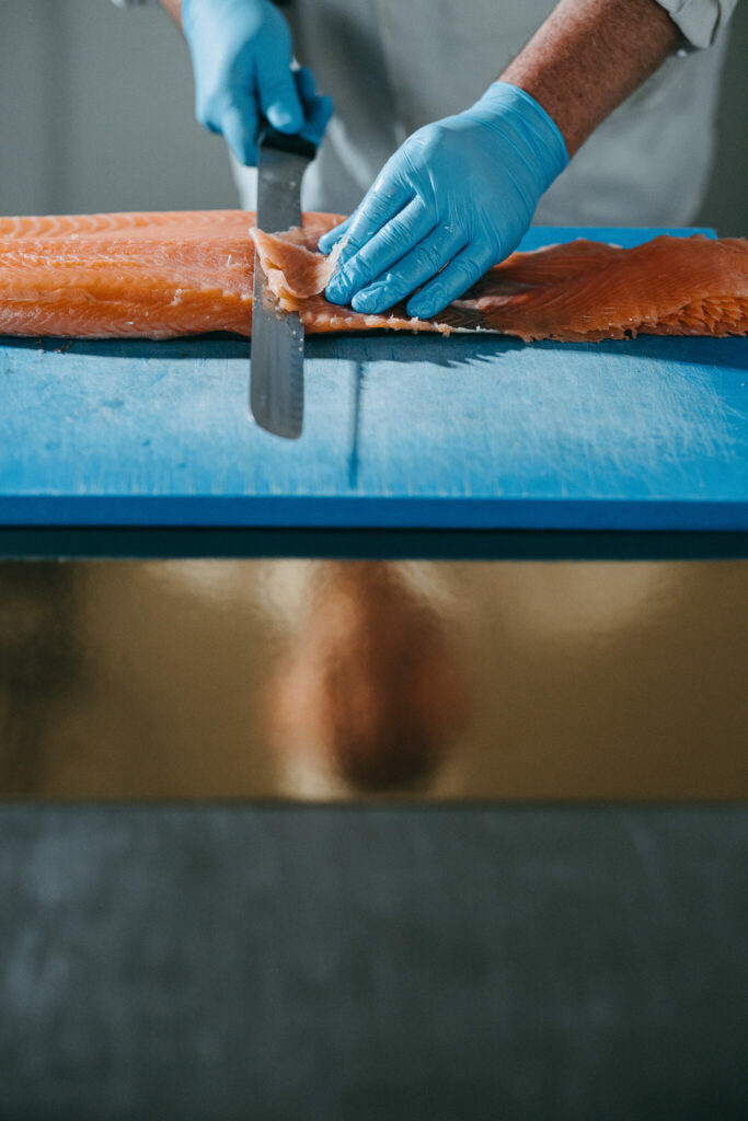 Depuis plus de trois décennies, la Maison Dawagne incarne l’excellence dans le monde du saumon fumé. Le travail commence par une rigoureuse sélection de poissons frais, issus de sources certifiées biologiques en Norvège, en Écosse et en Irlande. Après avoir levé les filets, ils sont salés à la main, avec du gros sel marin pour créer une cuisson chimique du poisson. Vient ensuite le moment crucial du fumage à l’ancienne, réalisé avec de la sciure de chêne, de hêtre et d’une essence secrète jalousement gardée par la maison. Chaque étape du processus est rigoureusement effectuée afin de garantir une qualité d’exception.